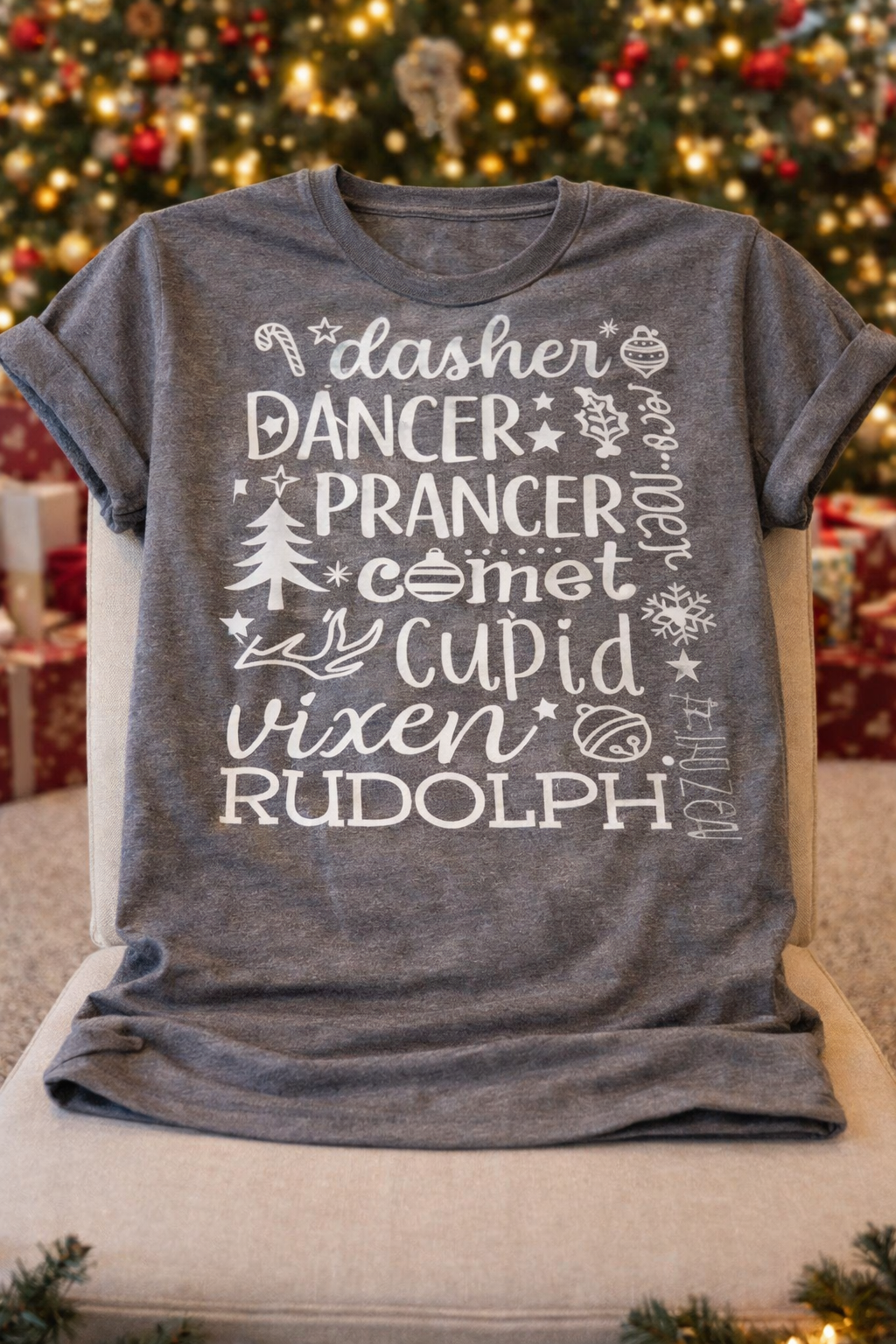 Dasher, Dancer, Prancer… and all the holiday favorites in one cozy tee!
